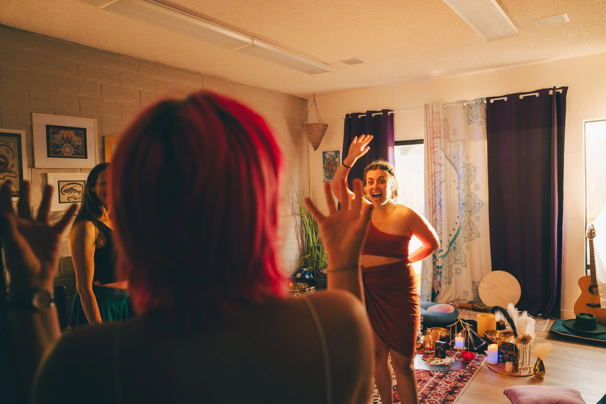 I lead you & your partner through playful embodied practices like mirroring movement, gentle touch, mindful feeding rituals to hold each other’s hearts in gratitude.